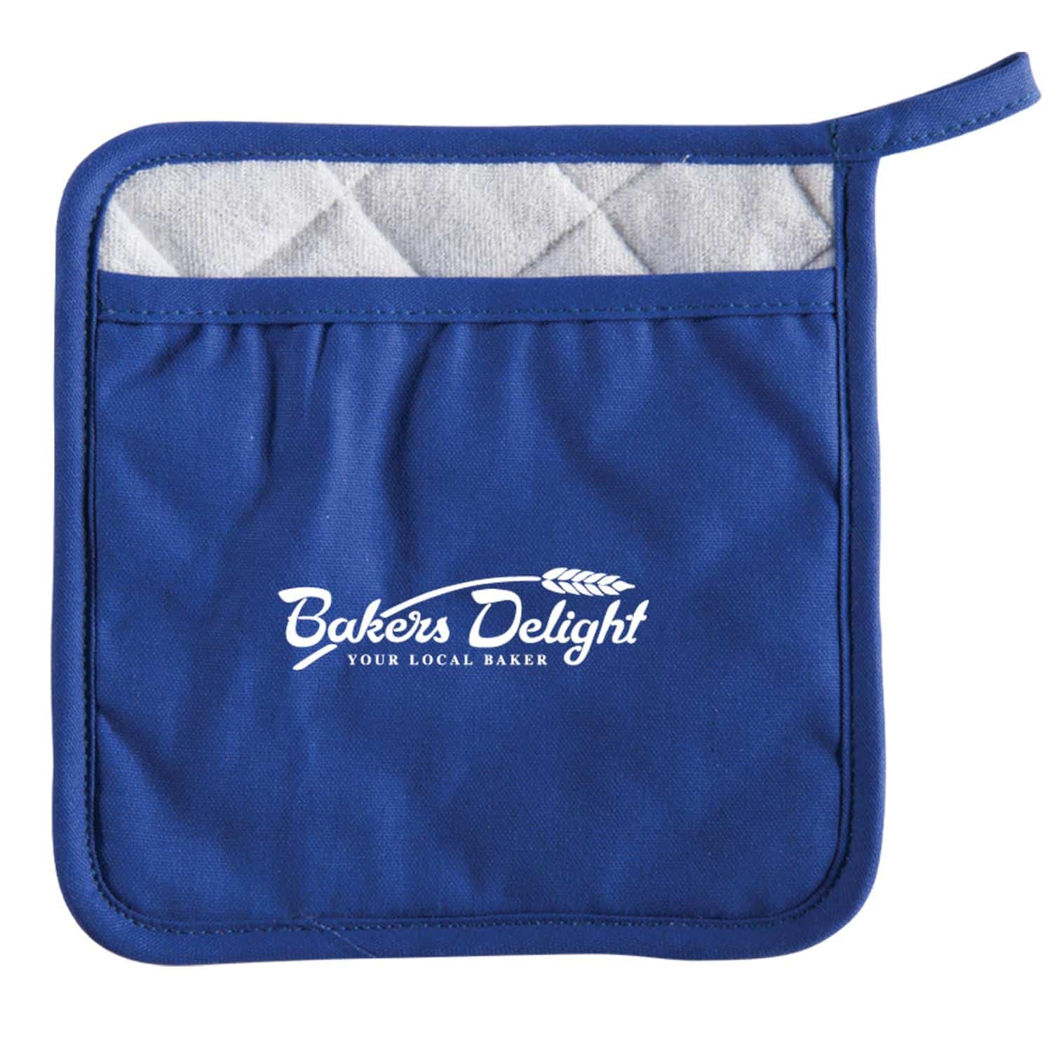 Easily grab hot dishes with the 100% cotton canvas pot holder. Features heat-resistant underside and a loop for easy hanging. 6 7/8″ W x 6 7/8″ H x 1/4″ D