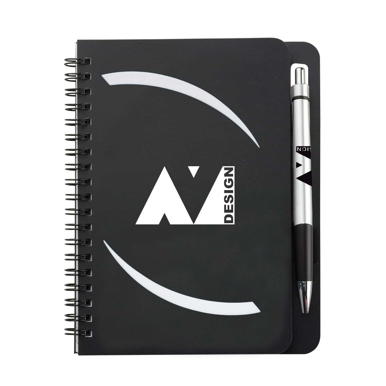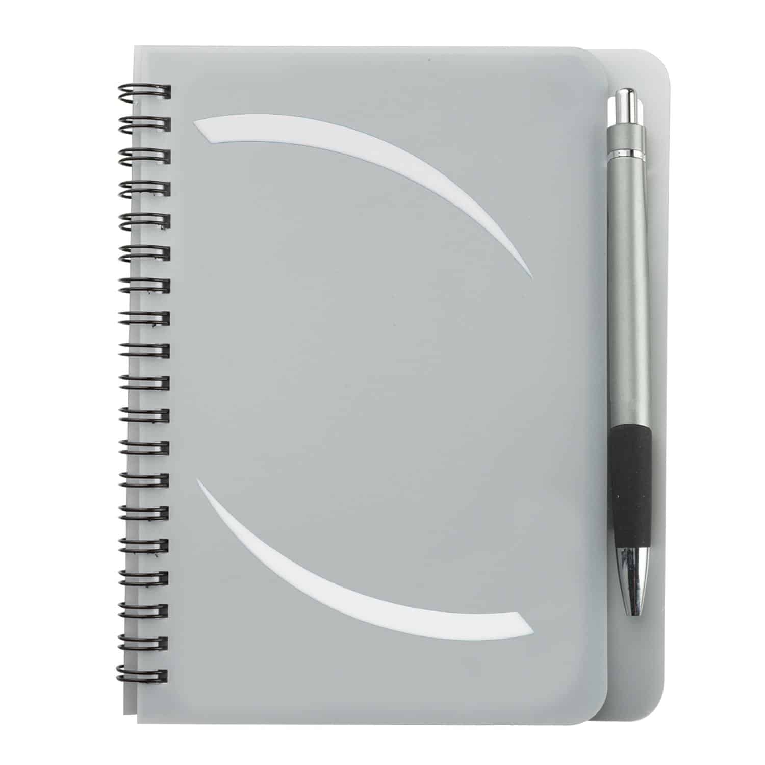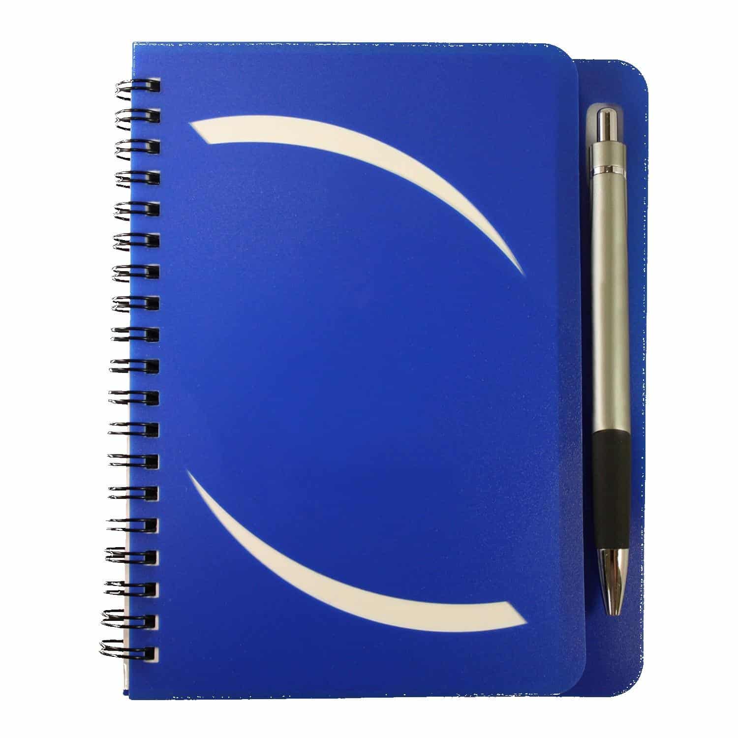 This perfectly sized 5″x7″ lined spiral notebook with 70 pages has polypropylene front and back covers with die-cut swooshes. It includes a matching Huntington MGC Pen. Ideal for aspiring writers, eager note takers and training daydreamers. 7″ H x 5 5/8″ W x 1/2″ D