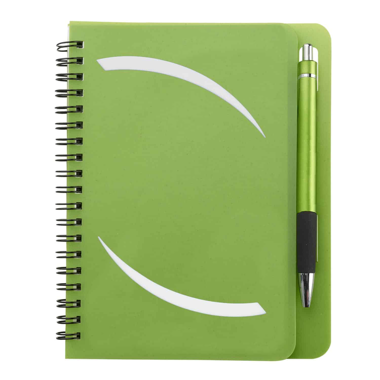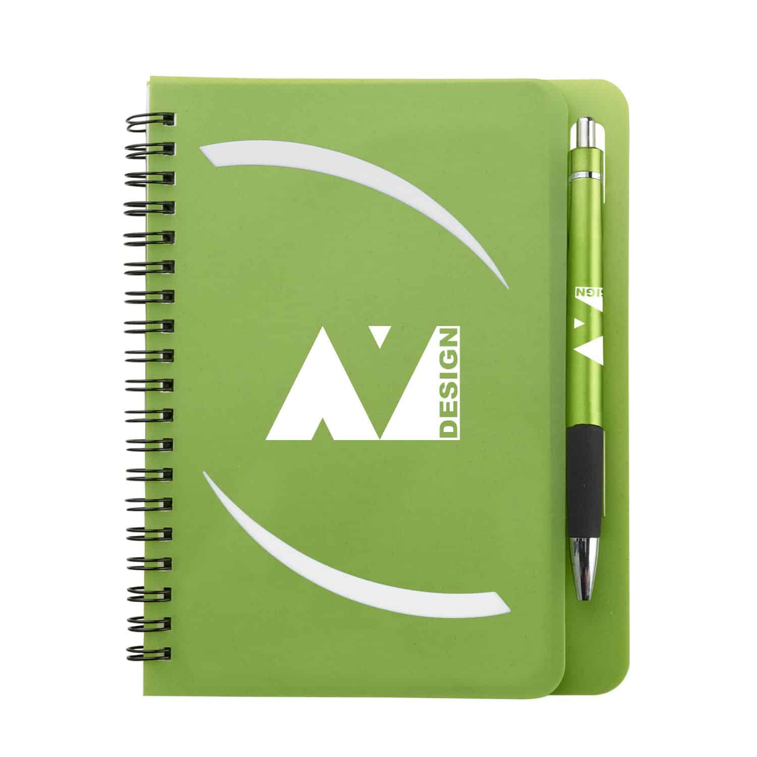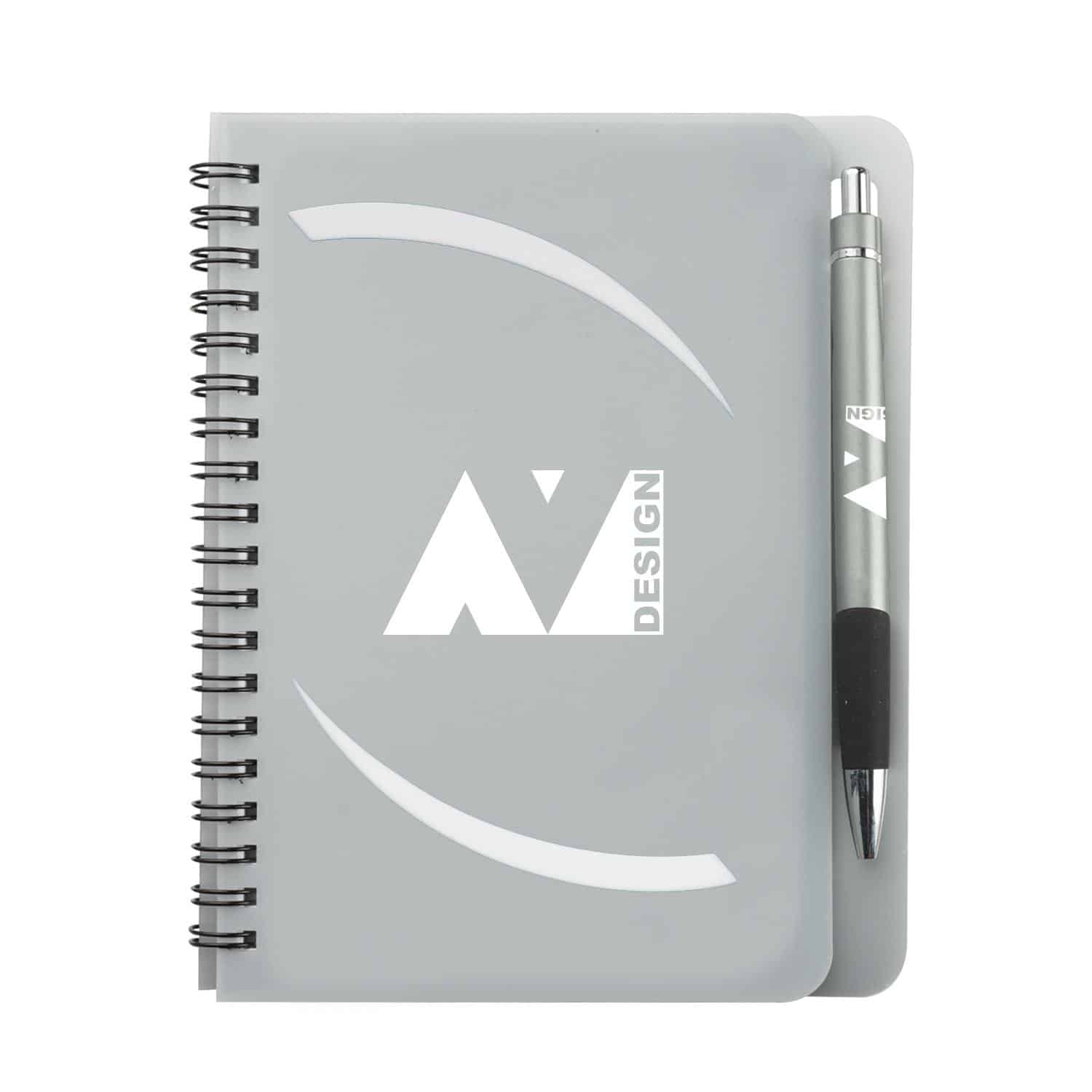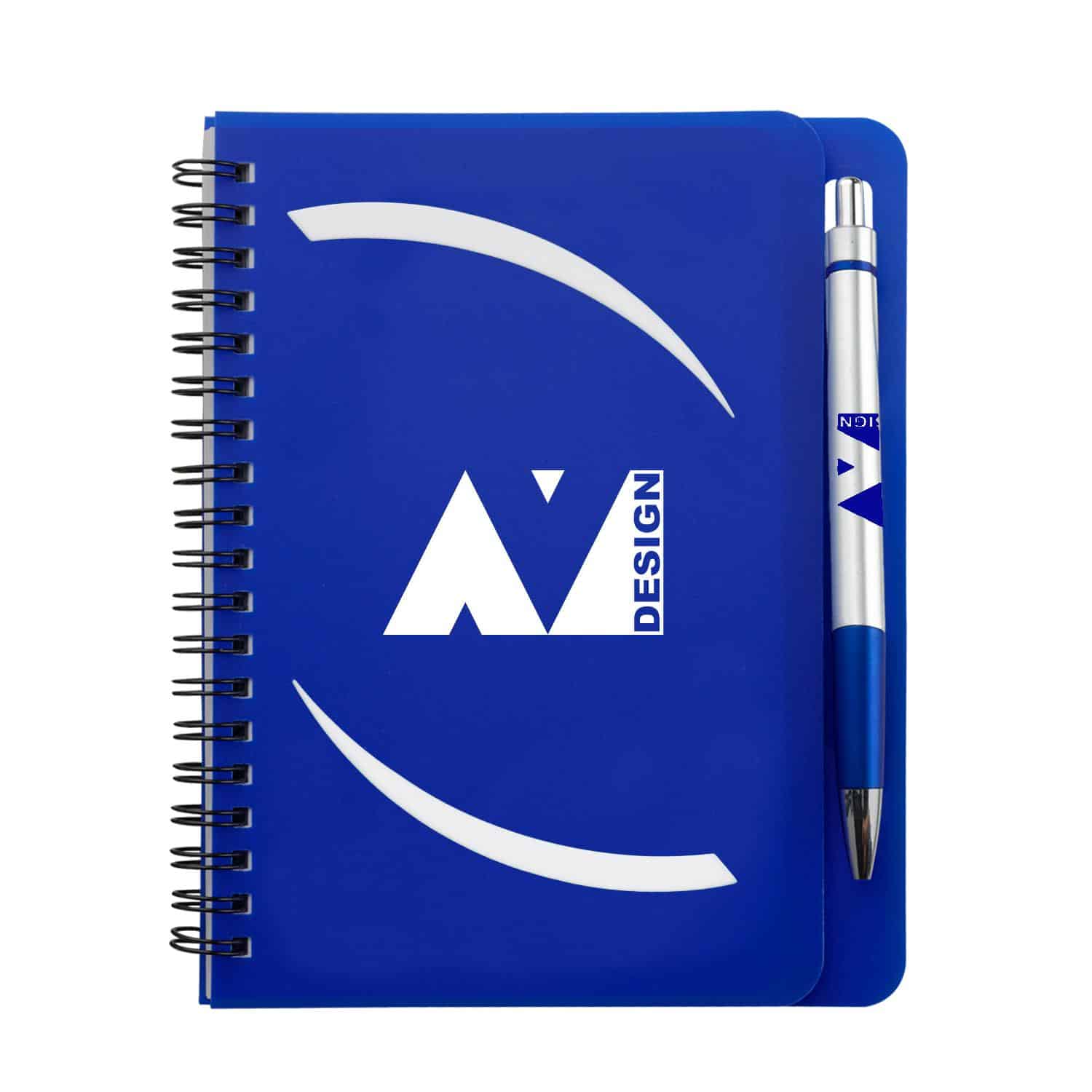 This perfectly sized 5″x7″ lined spiral notebook with 70 pages has polypropylene front and back covers with die-cut swooshes. It includes a matching Huntington MGC Pen. Ideal for aspiring writers, eager note takers and training daydreamers. 7″ H x 5 5/8″ W x 1/2″ D