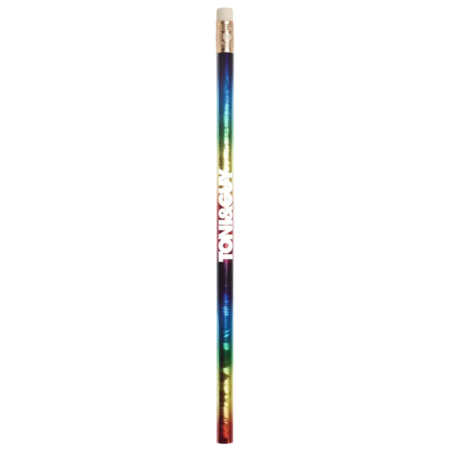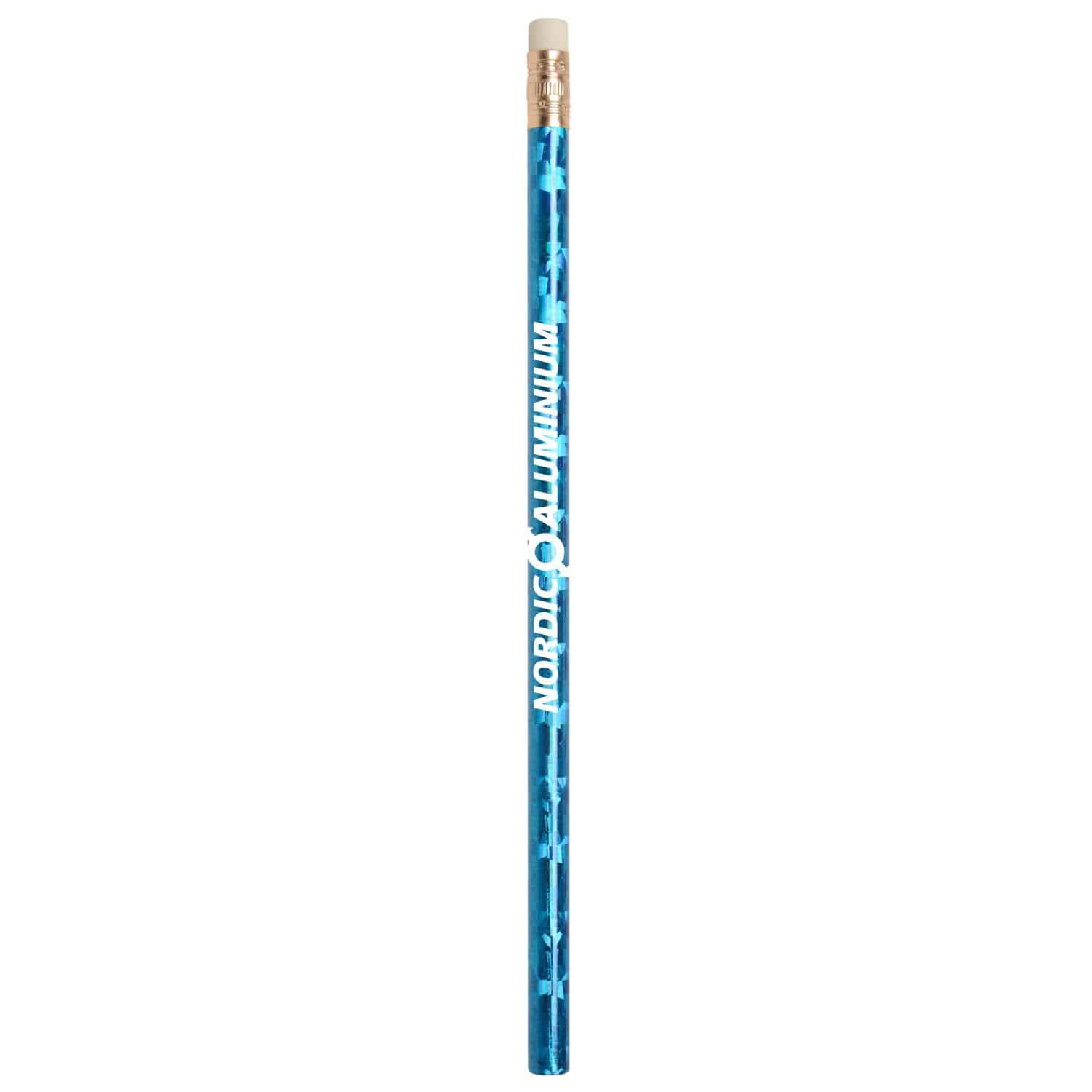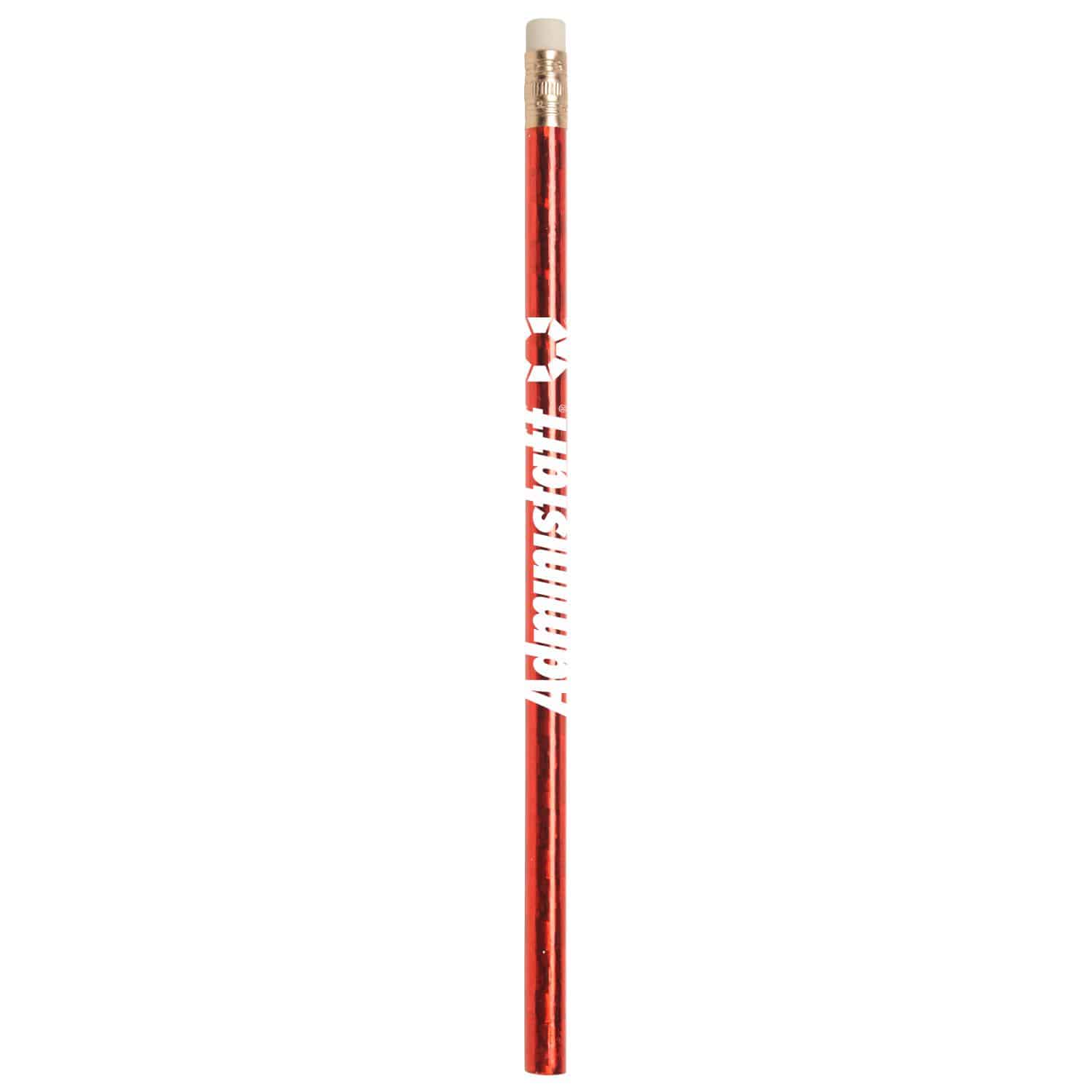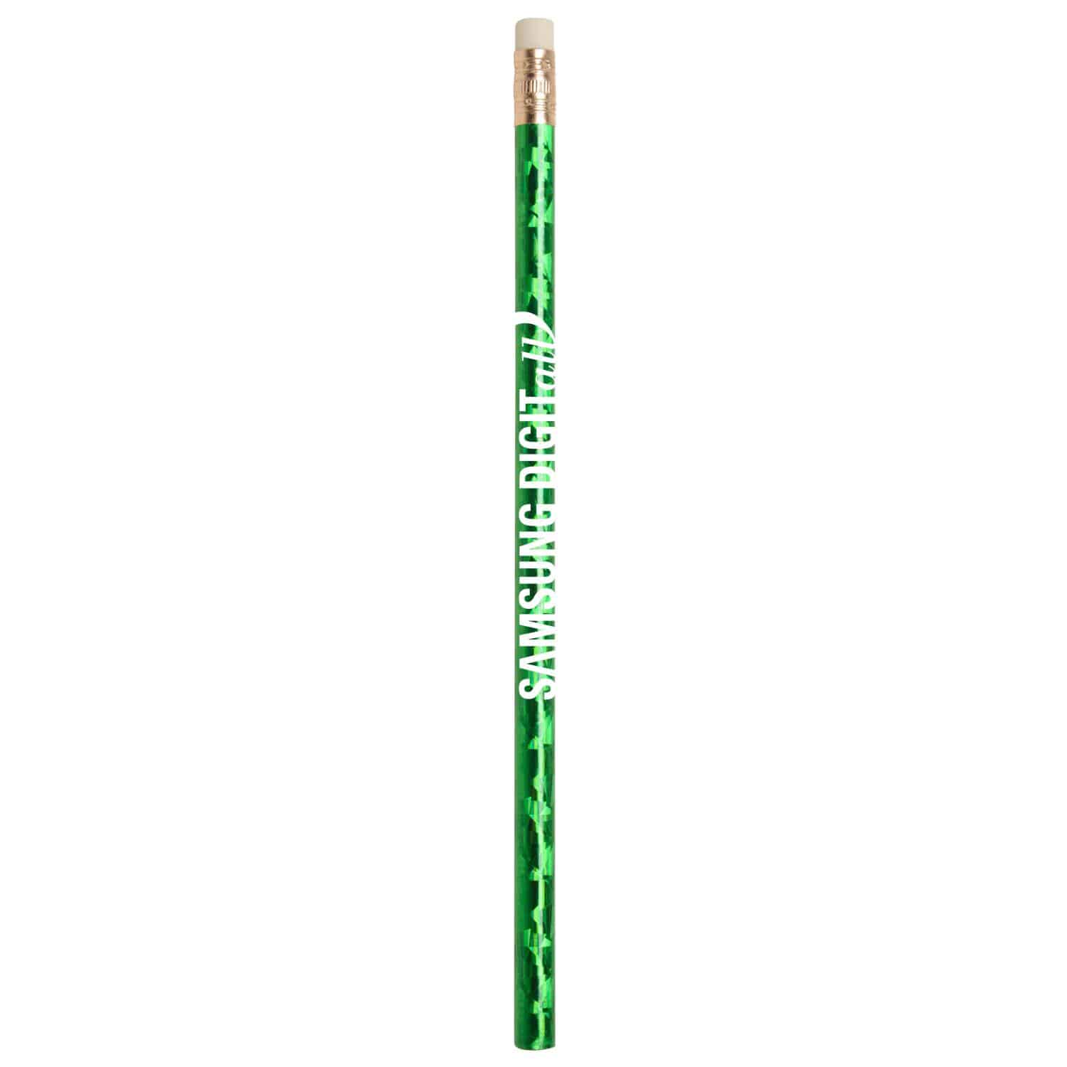Round #2 pencil with prismatic foil wrapped design. 7 1/2″ W x 5/16″ Diameter
