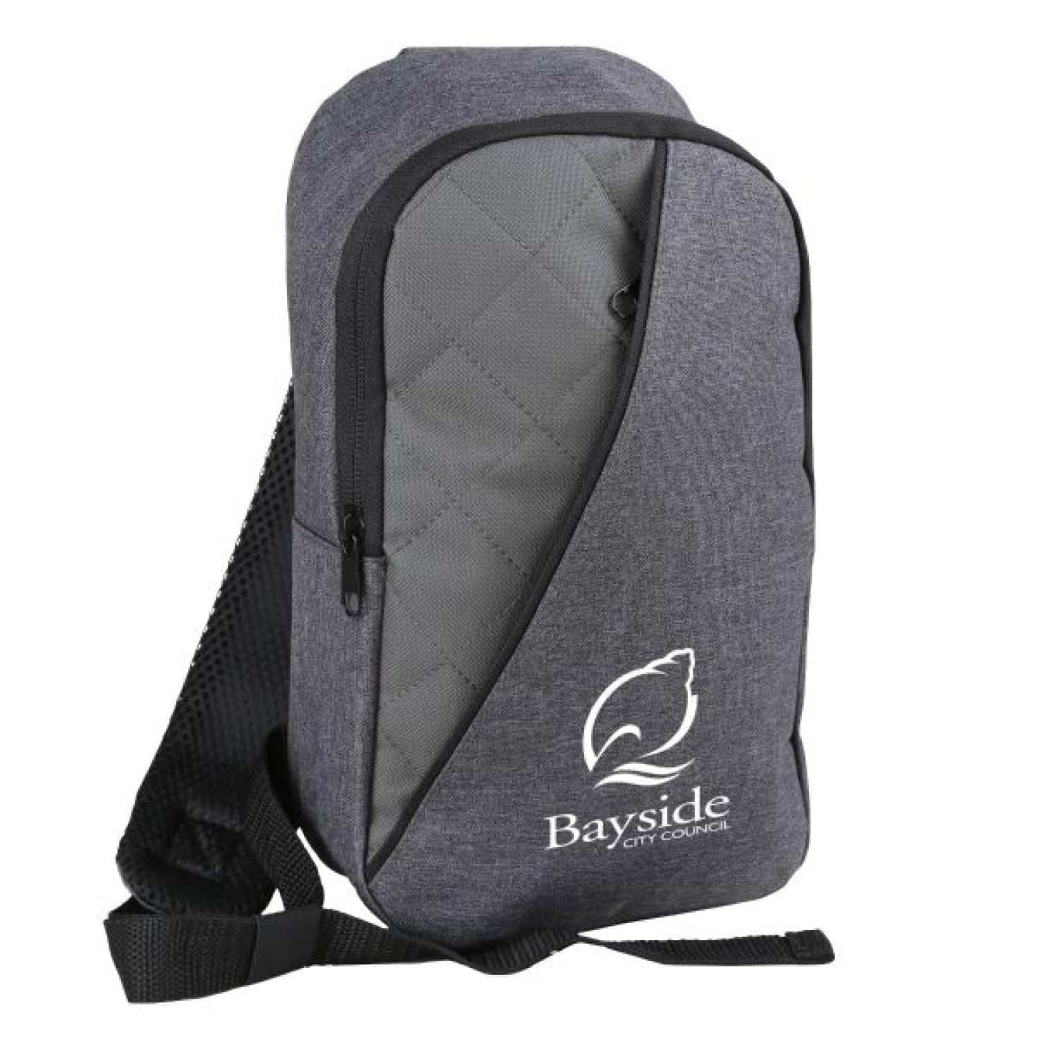 This crossbody bag is constructed from durable 300D heathered polyester with a quilted 600D polyester pattern. It features a zippered main compartment and a hidden zippered front pocket for added security. Inside, there is an interior pocket to organize your phone, wallet, keys, and more. The adjustable padded shoulder straps ensure comfort throughout the day. 11″ H x 6″ W x 1 1/2″ D