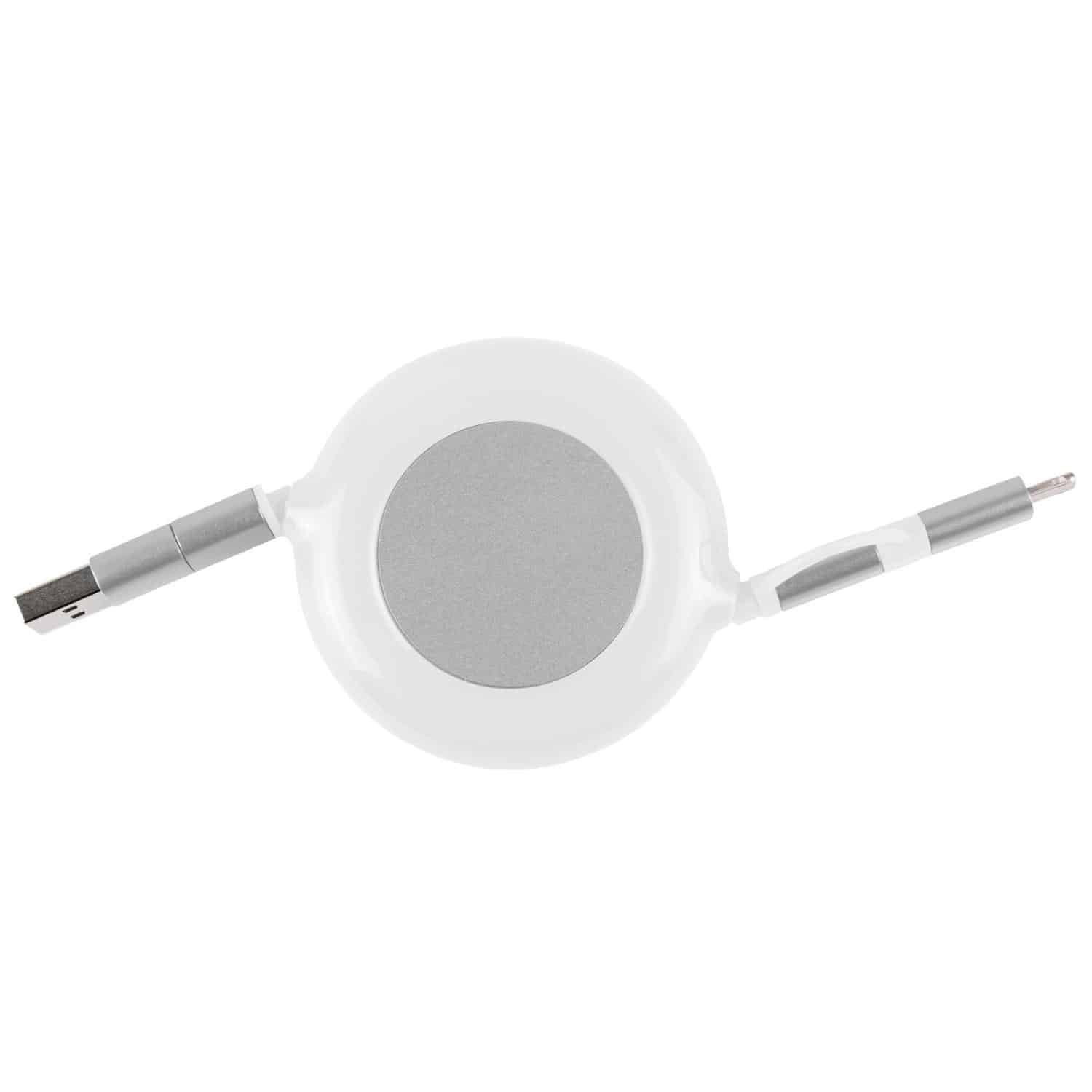 Power up with the 3-in-1 Retractable Fast Charge-it™ Cable, designed for durability and convenience. This versatile cable is compatible with Lightning and Type-C devices, making it a perfect all-in-one solution. Simply connect to a powered USB or Type-C port for fast, reliable charging on the go or at home. 5 3/4″ H x 2 7/8″ W