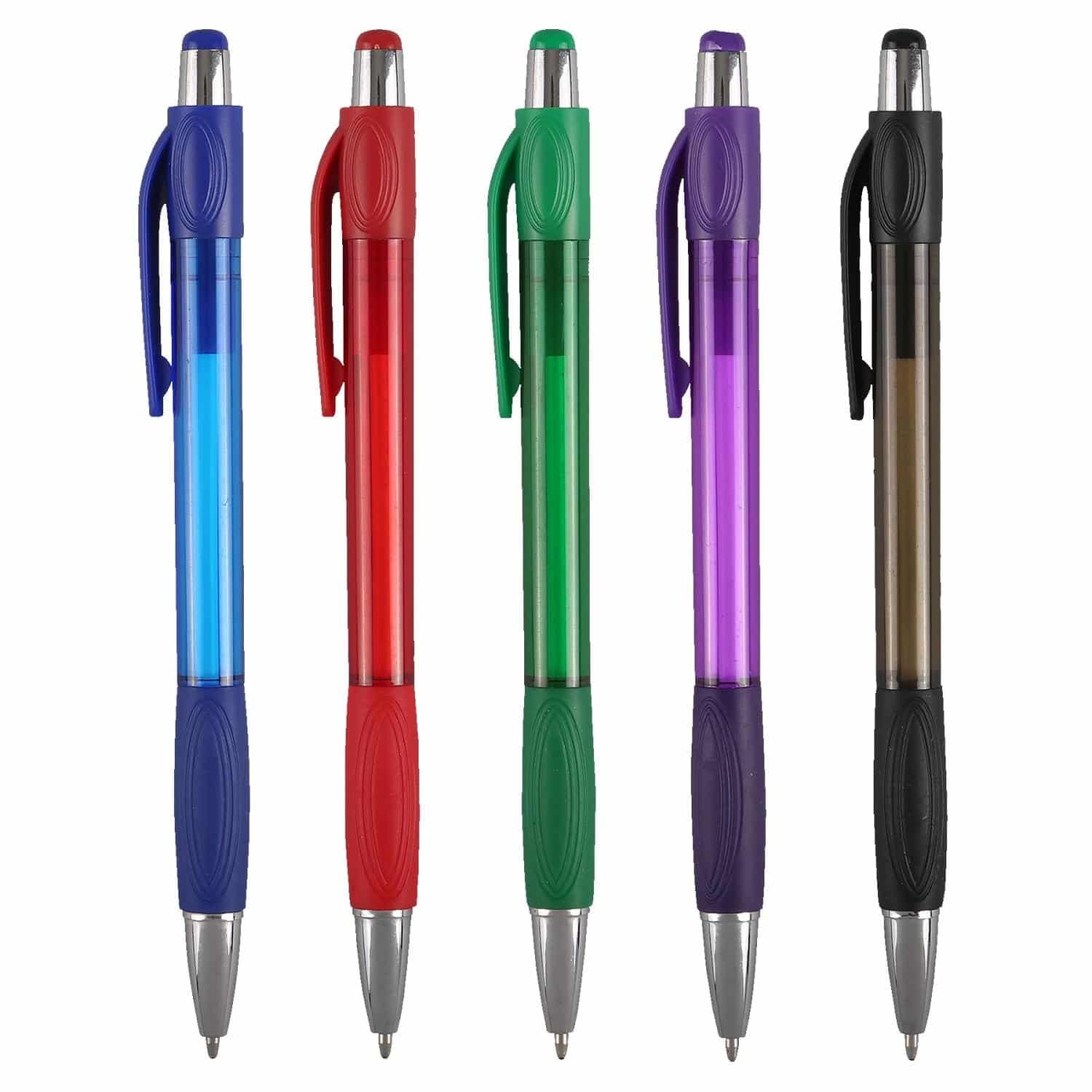 Transparent Pen, Matching Rubber Grip, Chrome Ferrule, Chrome Plunger, Black Ink, Medium Point. 5 5/8″ L x 3/8″ D